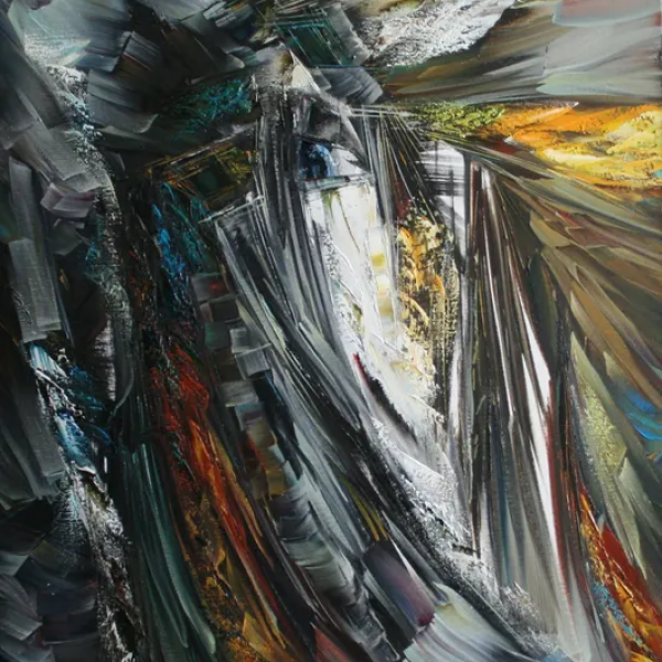 Some paintings do not depict Japan directly but suggest it through memory and impression. Architecture, symbols, and cultural references appear only in fragments, translated into layered colour and shifting form. The subject is present, yet never fully described. Instead of outlining specific objects, the compositions evoke atmosphere.