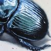 Photorealistic insect painting of the blue scarab beetles. I channel my enthusiasm for the amazing characteristics of animals by rendering them with academic oil painting techniques on canvas. The background is beige/cream color. I was fascinated by their amazingly beautiful blue/green metallic color. They look like gemstones to me. The beetle is crawling towards the hole on the ground. I believe that the object of the "hole" has a mysterious atmosphere. It could indicate the birth or the end, either way. This painting has a surrealistic atmosphere because of the hole. In Ancient Egypt, the dung beetle now known as Scarabaeus sacer was revered as sacred. The Egyptians saw the scarab as a symbol of renewal and rebirth. The beetle was associated closely with the sun god because scarabs roll large balls of dung in which to lay their eggs, a behavior that the Egyptians thought resembled the progression of the sun through the sky from east to west.