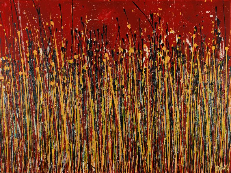 Expressive modern abstract, bold full of life, gloss and shimmer! inspired by nature, many of bright tones combined with mica particles and iridescent drizzles over red. Ready to hang and signed. I include a certificate of authenticity that lists the materials as well as when the painting was completed. Fine high quality materials such Golden colors products are used and protective spray for sunlight protection. This original one of a kind abstract painting was created by international best selling abstract painter Nestor Toro using his spontaneous gestural style. I use the best Professional Grade acrylics by Sennelier and Golden for rich colors! All works are protected with a UV layer for archival color stability which protects from sunlight and also provides a beautiful vibrant finish. This work was created on a high quality (hand cut canvas cut by the artist himself) and is shipped rolled in a tube. Simply take it to your local framer to have it stretched/mounted. Since it is loose canvas there are an infinite variety of framing methods. Simply pick the one that is best suited from the intended installation area. Keep in mind that you DO NOT need to have this work framed – your framer can simply mount the canvas on stretcher bars and the painting will be ready to hang with no “frame” required. This painting includes a signed Certificate of Authenticity to protect your investment in my art. My work can be found in over 30 countries on 5 continents. Looking for FINE ART that is not mass produced with the same look over and over then you have found the right artist and you have found a perfect example of this with this statement piece. You will enjoy this abstract expressionism work daily for the rest of your life! This work (as they all do) needs to be seen in person as photos can not convey the intricate detail and feeling that can only be experienced when viewing the full sized painting!