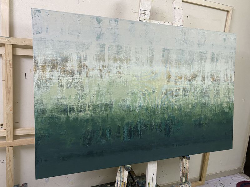 In this piece, I channeled a symphony of emotions through my brushstrokes, exploring the harmony between serenity and the dynamic ebbs and flows of life. The acrylic layers, in their abstract expressionism, speak to the beauty of imperfection and the tranquility of nature's palette. It embodies a whispering landscape of memories, inviting viewers into a space of contemplation and peace, perfect for bringing a soulful energy to any home.