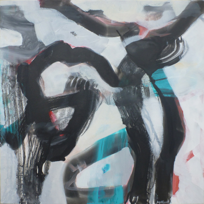 Vibrant colours in broad brushstrokes, lines drawn freely with the brush without cohesion embrace pieces of paper and together with other materials make up the whole, whilst the removal or addition of such elements is decided by the artist in the course of creation
